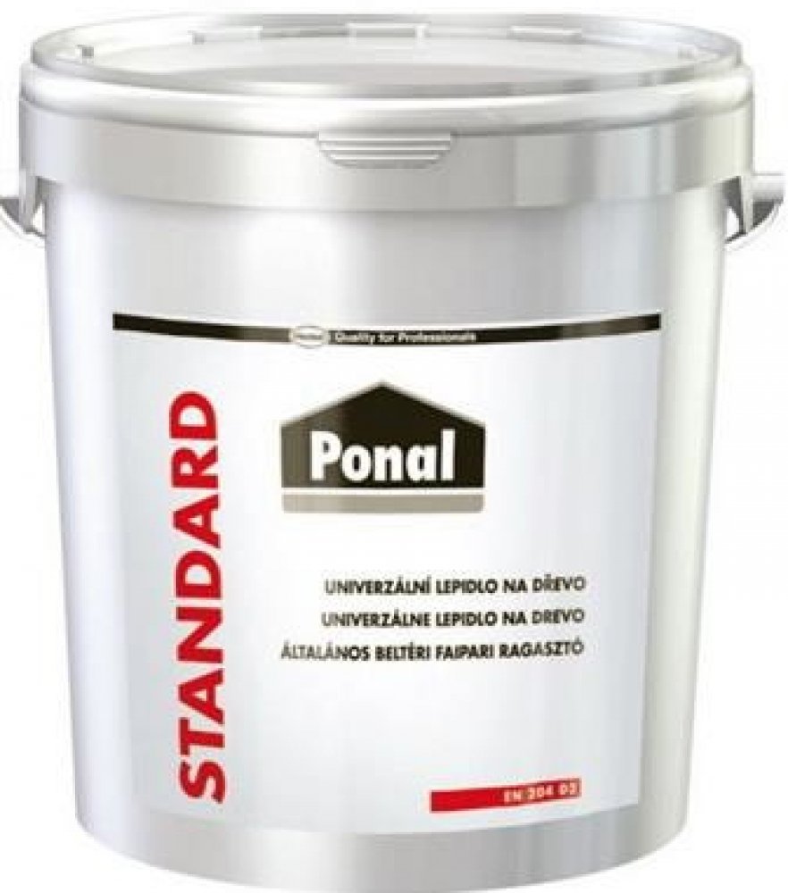 Ponal Standard univerzalní lepidlo na dřevo 5 kg Univerzální lepidlo na dřevo, včetně tvrdého Montážní lepení (kolík, drážka a pero, čep a dlab), lepení spár (masivní dřevo, nákližek), lepení ploch, vrstvené desky z lisovaných hmot, lisované dřevovláknité desky apod.Bílý klíh ze syntetické pryskyřice na bázi PVAc. Teplota zpracování +5 až + 30 0C, optimálně +20 až + 25 st.C.Vysoká pevnost lepení ....