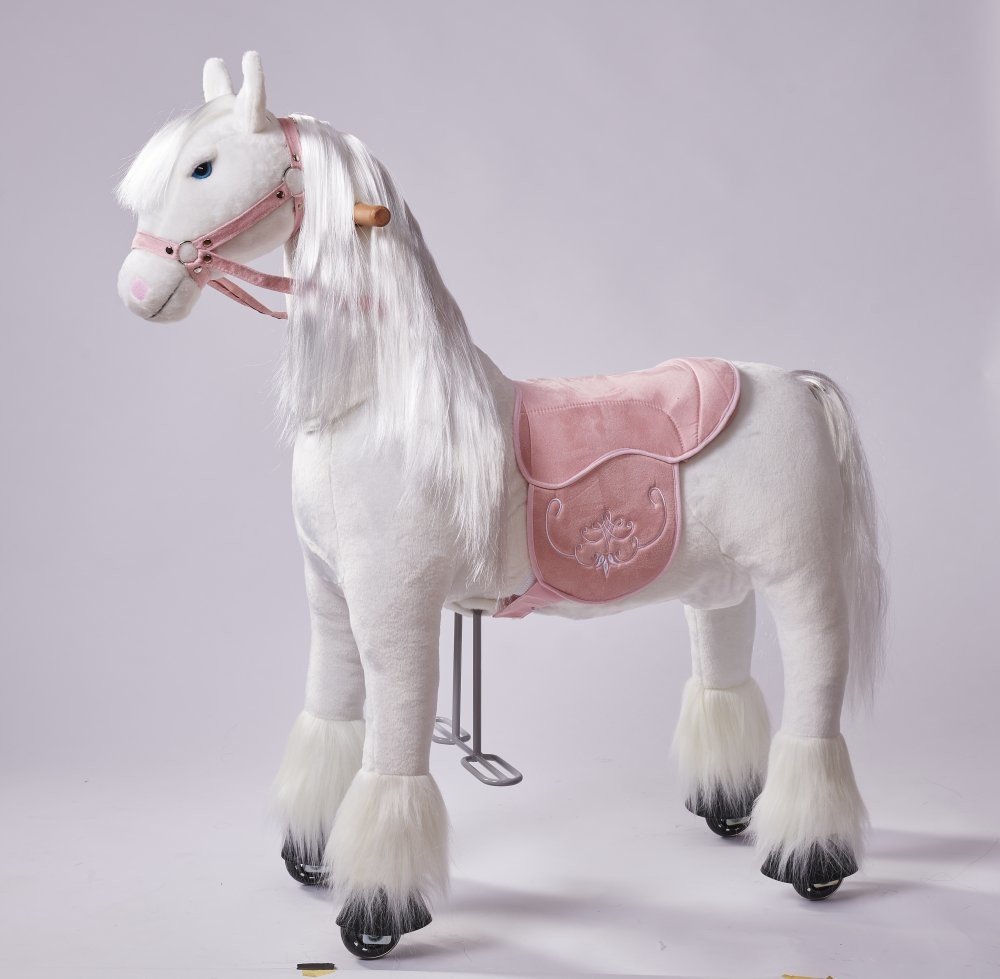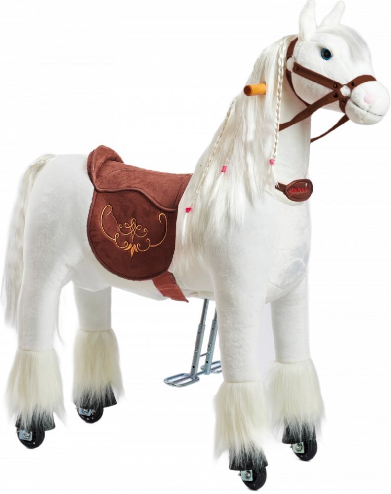 Stačí na bílého koníka Tiara s bílou hřívou nasednout a pravidelným nasedáním a vysedáním ze sedla se kůň rozjede - je to stejný pohyb jako byste seděli na živém koníkovi. Směr jízdy si dětí regulují natáčením madel. Koníka zbrzdíte opět pohybem svého těla. Tento přirozený koňský pohyb má blahodárné účinky na důležité svalové partie, které běžně nezapojujeme.