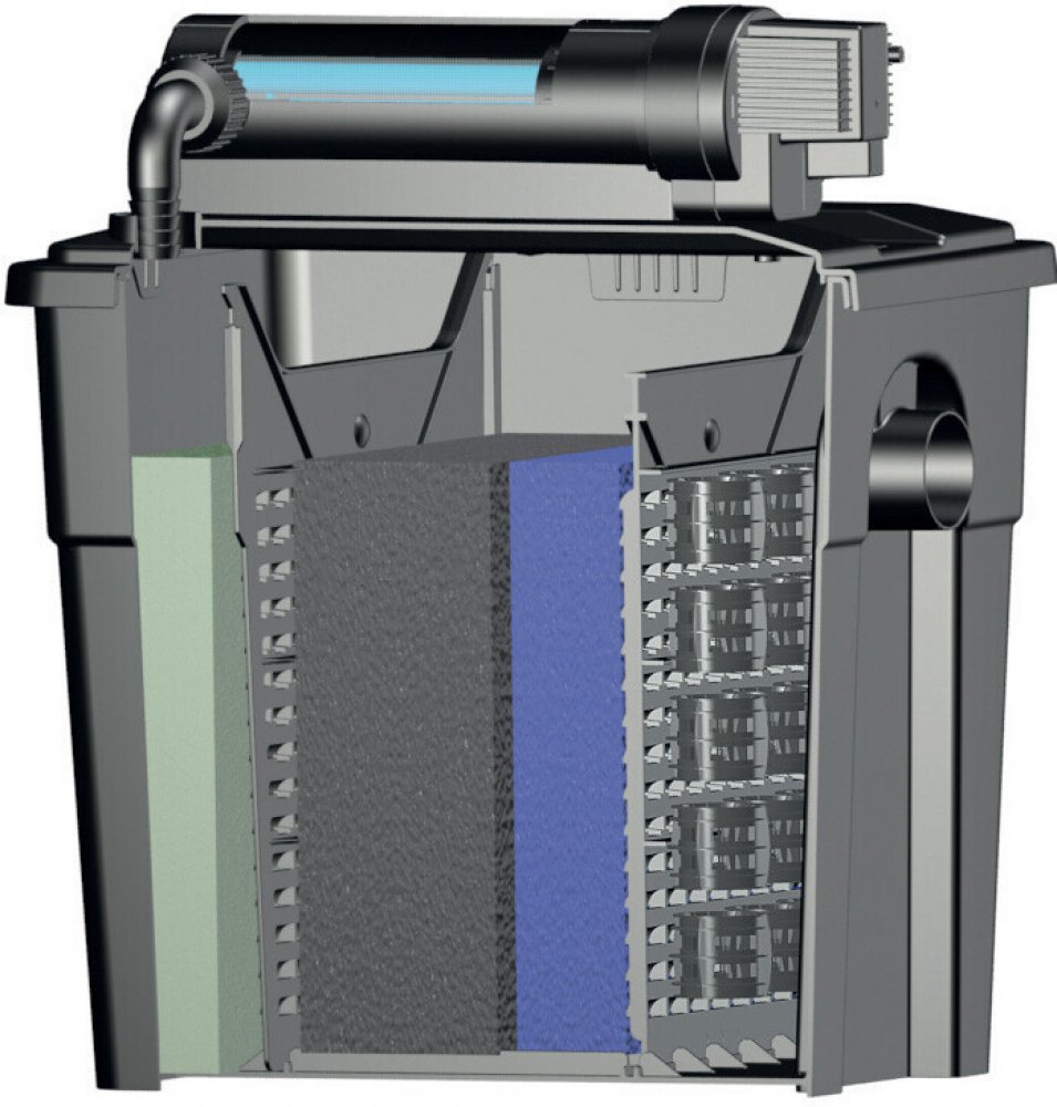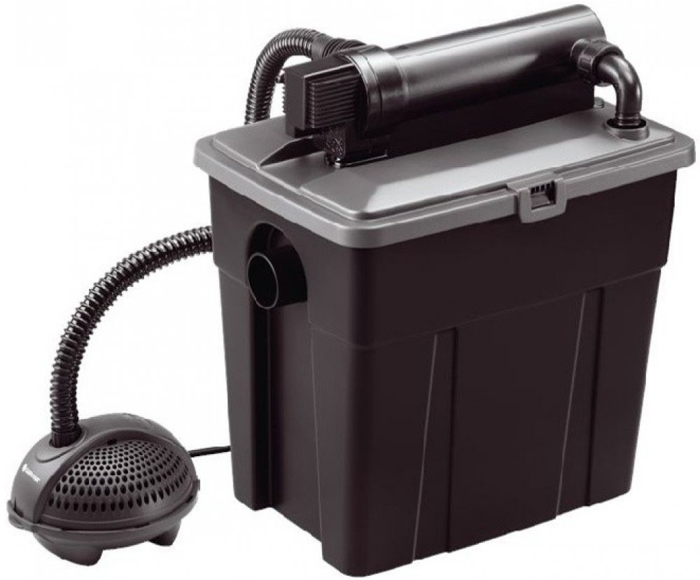 Filtr je vybavený UV lampou o výkonu 11W a jezírko je tedy čištěno mechanickou i biologickou cestou.