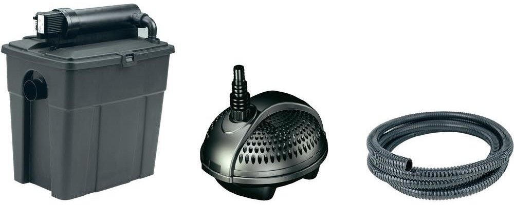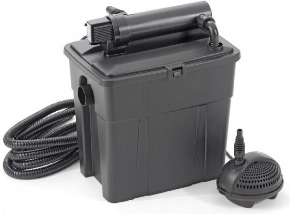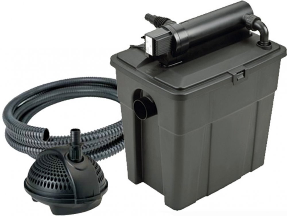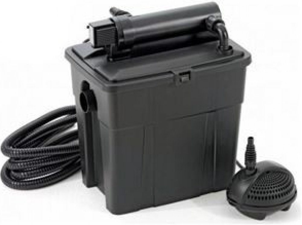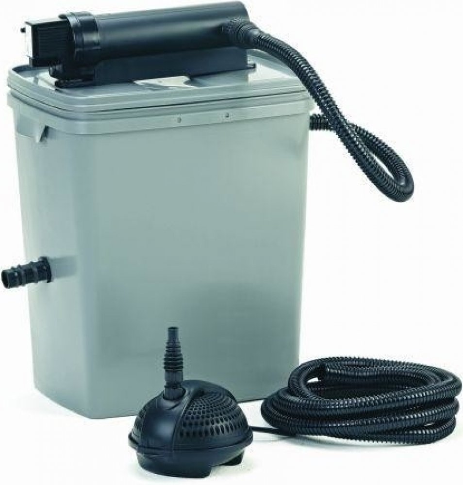 Filtrační set ve dvou variantách pro malá zahradní jezírka až do 8 m3. Garance průzračné vody za super cenu. Set se skládá z filtru z UV lampou, čerpadla a hadice.