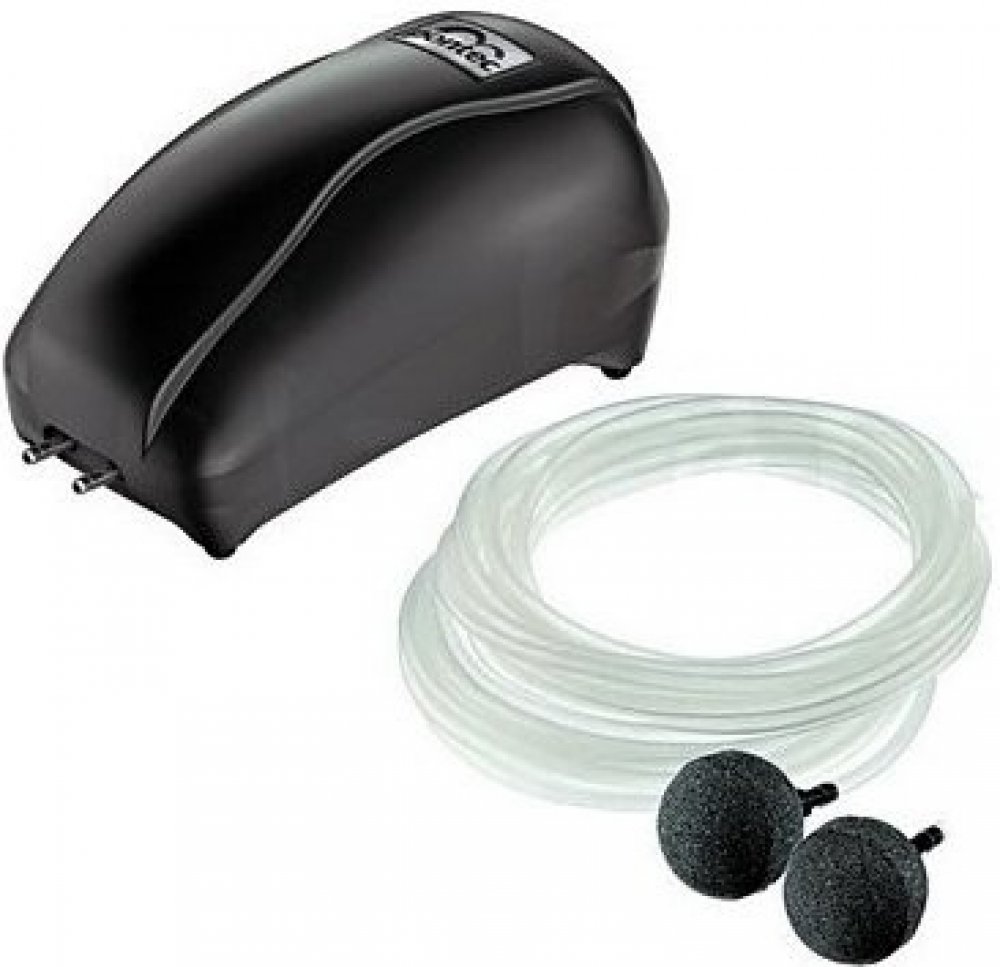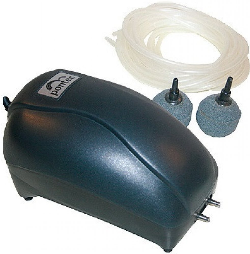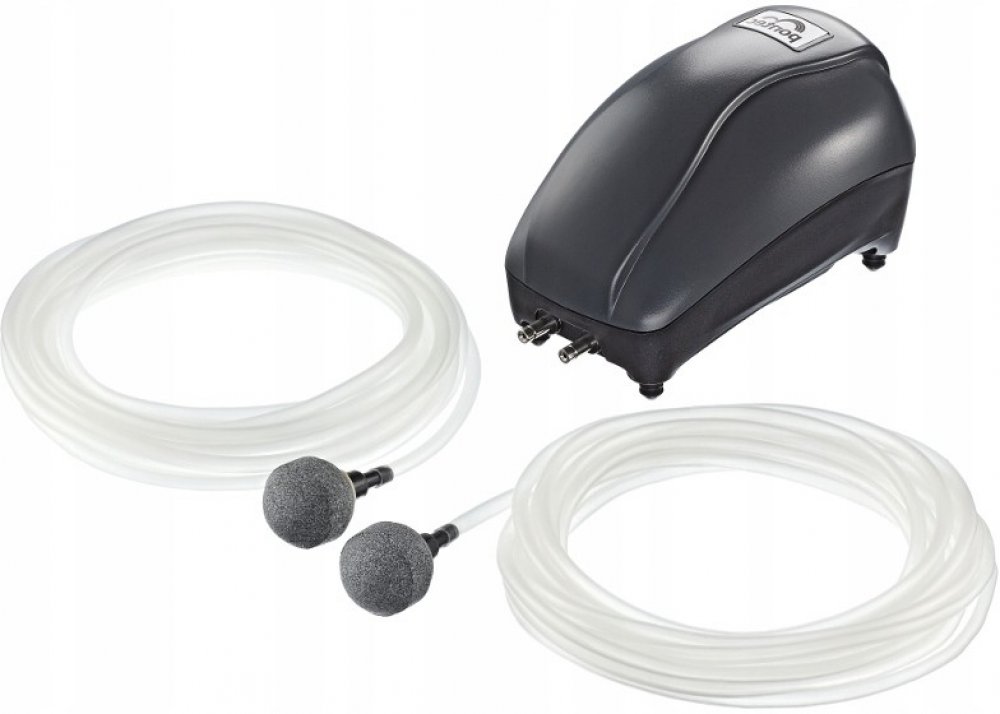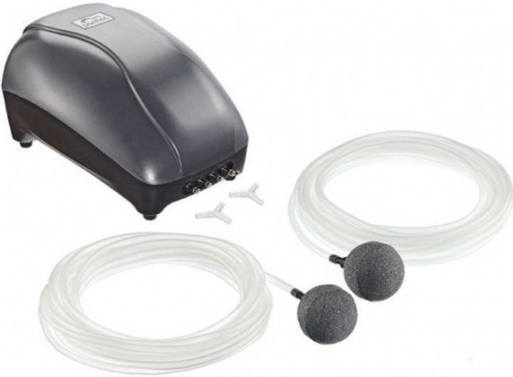 Vzduchovací kompresor, okysličovací čerpadlo k obohacení jezírkové vody kyslíkem.