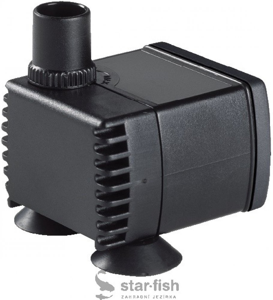Čerpadlo je také vhodné do akvárií. Pomocí dvou silikonových přísavek (jsou obsahem balení) ho lze snadno připevnit na stěnu akvária, nebo na jiný hladký povrch.