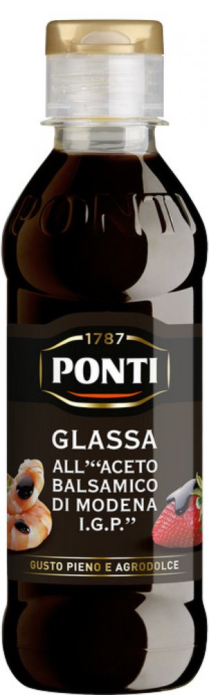 Glassa al Aceto Balsamico di Modena I.G.P. od Ponti je vynikající sladkokyselá poleva vyrobená z vysoce kvalitního balzamikového octa a vařeného moštu. Je ideální pro dochucení široké škály pokrmů, včetně masa, ryb, zeleniny, sýrů a dezertů, jako je ovoce a zmrzlina. Obsahuje 38% balzamikového octa z Modeny I.G.P., má plnou a vyváženou chuť a je bezlepková.