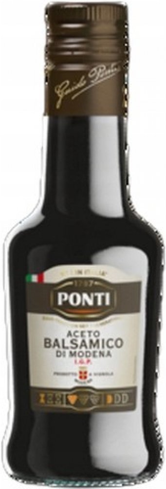 Balzamikový ocet z Modeny od společnosti Ponti okamžitě nadchl italské chuťové buňky! Získává se smícháním vinného octa a vařeného moštu z hroznů. Díky zrání v dřevěných barelech dozrává a získává jedinečnou tmavě hnědou, zářivou barvu třpytící se zlatočervenými odstíny. Jeho vyvážená, příjemná, sladkokyselá chuť se skvěle kombinuje s vařenou a syrovou zeleninou a červeným masem. Je také klasickým doplňkem populárního salátu caprese z sýra mozzarella, rajčat a bazalky. Rodilí Italové ho používají také pro zvýraznění chuti jahod a lesních plodů.Parametry