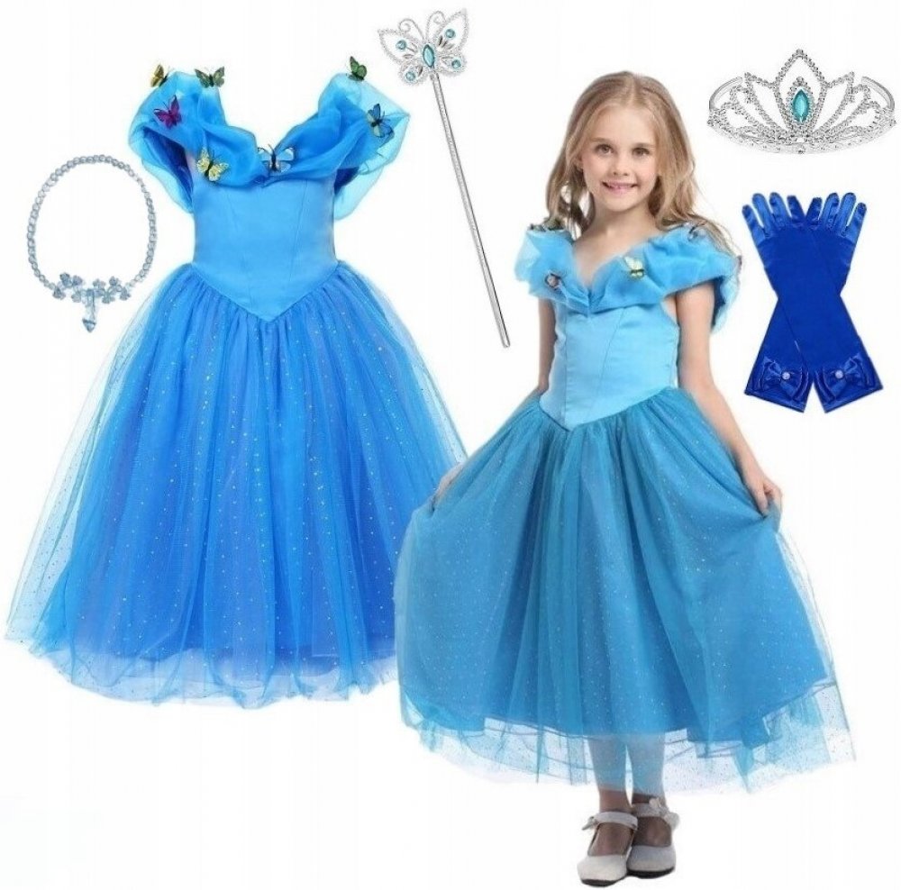KOSTÝM KOSTÝM PŘEVLEK ŠATY POPELKA CINDERELLA PRINCEZNA 98 / 104 CM (z visačky 110) + DOPLŇKYKOSTÝM POPELKA