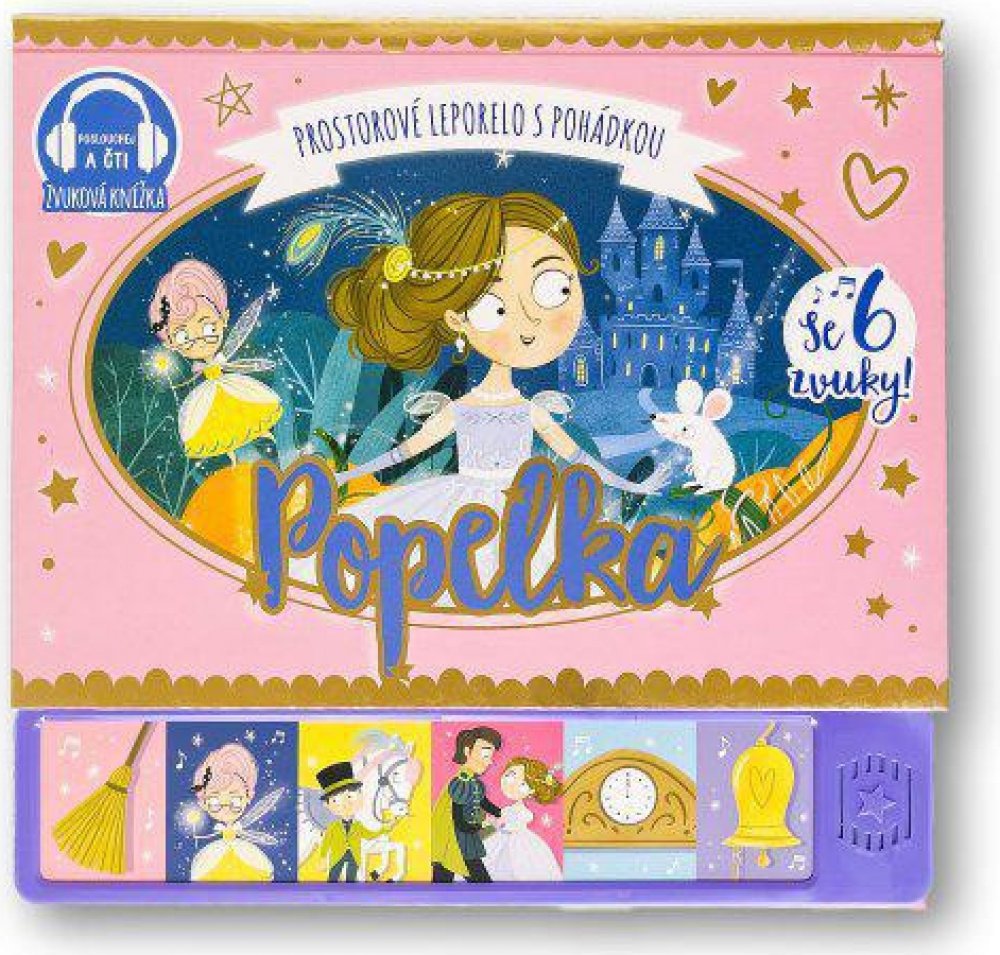 Popelka - prostorové leporelo s pohádkou se 6 zvuky Vdechni život kouzelnému světu pohádek s nádherným prostorovým leporelem se zvuky. Popelka velmi touží podívat se na ples, ale její krutá macecha a nevlastní sestry ji nechtějí vzít s sebou. Naštěstí se v pravý čas objeví Popelčina kouzelná kmotřička, která se postará o to, aby na večer strávený na plese Popelka nikdy nezapomněla. V úchvatném pro...