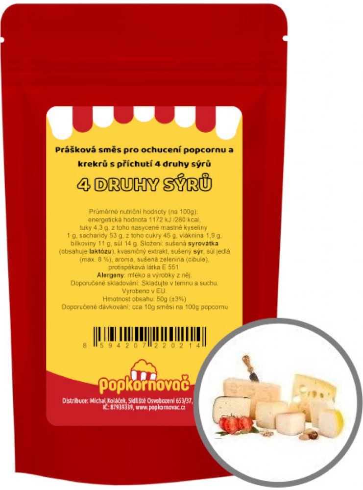 Popkornovač.cz Příchuť na popcorn 4 druhy sýrů 50 g