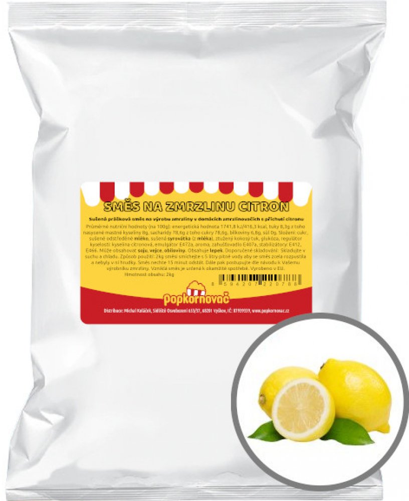 Směs na zmrzlinu CITRON (2kg) Prášková směs pro výrobu domácí zmrzliny s příchutí pomerančů. Směs je již kompletně připravená, nemusí se přidávat žádné další ingredience - stačí pouze smíchat s vodou. Zmrzlinová směs je vhodná nejen do zmrzlinovačů z naší nabídky (Guzzanti GZ 157, Domo DO9066I, Guzzanti GZ 151A), ale i do ostatních domácích zmrzlinovačů. Zmrzlinová směs se ředí s vodou v poměru 1:2,5 (směs:voda). Směs je balena ve 2kg sáčku. (foto produktu je ilustrační) Náš tip Pro ozdobení a dochucení doporučujeme přikoupit některý z toppingů (polev) z naší nabídky! V přípravě domácí zmrzliny se vyznáme Nechceme být "obyčejným" obchodem, který prodává zboží, jenž zná pouze z obrázků či propagačních materiálů výrobců. Dobře si uvědomujeme, že osobní zkušenost s konkrétním produktem je jedinou možností, jak se s ním dokonale seznámit - ověřit jeho vlastnosti, spolehlivost, v případě surovin i jejich chuť. Proto veškeré produkty před uvedením do prodeje osobně testujeme, zkoušíme a samozřejmě i ochutnáváme. Díky tomu Vám můžeme nabídnout pouze kvalitní a ověřené výrobky, poradit s výběrem a v neposlední řadě předat naše zkušenosti a tipy pro správnou přípravu domácí zmrzliny. Návod na přípravu zmrzlinové směsi se zmrzlinovačem Domo DO9066I (objem nádoby 1,5 litru) Rozmíchejte cca 240g směsi na zmrzlinu v 600ml vody. Směs míchejte do té doby, než se zcela rozpustí a nebudou v ní hrudky. Poté nechejte směs 15 minut odstát. Odstátou směs nalijte do zmrzlinovače Domo DO9066I, který pak dle návodu k obsluze zapněte. Zmrzlina bude po cca 40-60minutách připravena. Pokud chcete zmrzlinu vylepšit, můžete do směsi přidat na jemno nakrájené kousky ovoce nebo čokolády, oříšky a další ingredience dle Vaší fantazie. Pro zmrzlinovače s kompresorem jiných značek je postup přípravy zmrzlinové směsi zcela stejný. Jediný rozdíl však může nastat v případě, že Váš zmrzlinovač má jinak velký objem nádoby. V tom případě bude potřeba pouze upravit množství směsi/vody (mísící poměr 1:2,5 stále zůstává). Pamatujte na to, že při míchání směs nabude, proto by celkové množství použitých surovin (voda, směs, ovoce...) nemělo přesáhnout cca 60% objemu nádoby zmrzlinovače. Návod na přípravu zmrzlinové směsi se zmrzlinovačem Guzzanti GZ 151A (objem nádoby 1,2 litru) Rozmíchejte cca 200g směsi na zmrzlinu ve 480ml vody. Směs míchejte do té doby, než se zcela rozpustí a nebudou v ní hrudky. Poté nechejte směs 15 minut odstát. Odstátou směs nalijte do zmrzlinovače Guzzanti GZ 151A, který pak dle návodu k obsluze zapněte. Zmrzlina bude po 60 minutách připravena. V případě, že chcete zmrzlinu tužší, nechte přístroj po dokončení výrobního procesu ještě dle potřeby v režímu "chlazení". Pokud chcete zmrzlinu vylepšit, můžete do směsi přidat na jemno nakrájené kousky ovoce nebo čokolády, oříšky a další ingredience dle Vaší fantazie. Pro zmrzlinovače s kompresorem jiných značek je postup přípravy zmrzlinové směsi zcela stejný. Jediný rozdíl však může nastat v případě, že Váš zmrzlinovač má jinak velký objem nádoby. V tom případě bude potřeba pouze upravit množství směsi/vody (mísící poměr 1:2,5 stále zůstává). Pamatujte na to, že při míchání směs nabude, proto by celkové množství použitých surovin (voda, směs, ovoce...) nemělo přesáhnout cca 60% objemu nádoby zmrzlinovače. Návod na přípravu zmrzlinové směsi se zmrzlinovačem Guzzanti GZ 157 Rozmíchejte cca 160g směsi na zmrzlinu ve 400ml vody. Směs míchejte do té doby, než se zcela rozpustí a nebudou v ní hrudky. Pokud chcete zmrzlinu vylepšit, můžete do směsi přidat na jemno nakrájené kousky ovoce nebo čokolády, oříšky a další ingredience dle Vaší fantazie. Následně vzniklou směs dejte odstát na cca 2h do mrazáku. Poté ji vyjměte a promíchejte. Promíchanou směs nalijte do připraveného/namraženého (viz. návod k obsluze) zmrzlinovače Guzzanti GZ 157, nastavte časovač na 20min a přístroj zapněte. Po zhruba 20 minutách je zmrzlina hotová. V případě potřeby můžete ještě zmrzlinu vložit na chvíli do mrazáku, aby ještě více ztuhla. Náš tip: Doporučujeme po každé výrobě zmrzliny nádobu umýt, řádně vysušit a vrátit ji zpět do mrazáku, aby byla opět namražená a připravená pro další výrobu zmrzliny. Složení cukr, sušené odstředěné mléko, sušená syrovátka (z mléka), ztužený kokosý tuk, glukóza, regulátor kyselosti: kyselina citronová, emulgátor E472a, aroma, zahušťovadlo E407a, stabilizátory: E412, E466. Může obsahovat soju, vejce, obiloviny. Obsahuje lepek. Průměrné nutriční hodnoty ve 100g směsi energetická hodnota 1741,8/416,3 kcal tuky 8,3 g z toho nasycené mastné kyseliny 8 g sacharidy 78,6 g z toho cukry 78,6 g bílkoviny 6,8 g sůl 0 g
