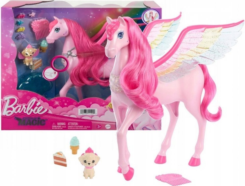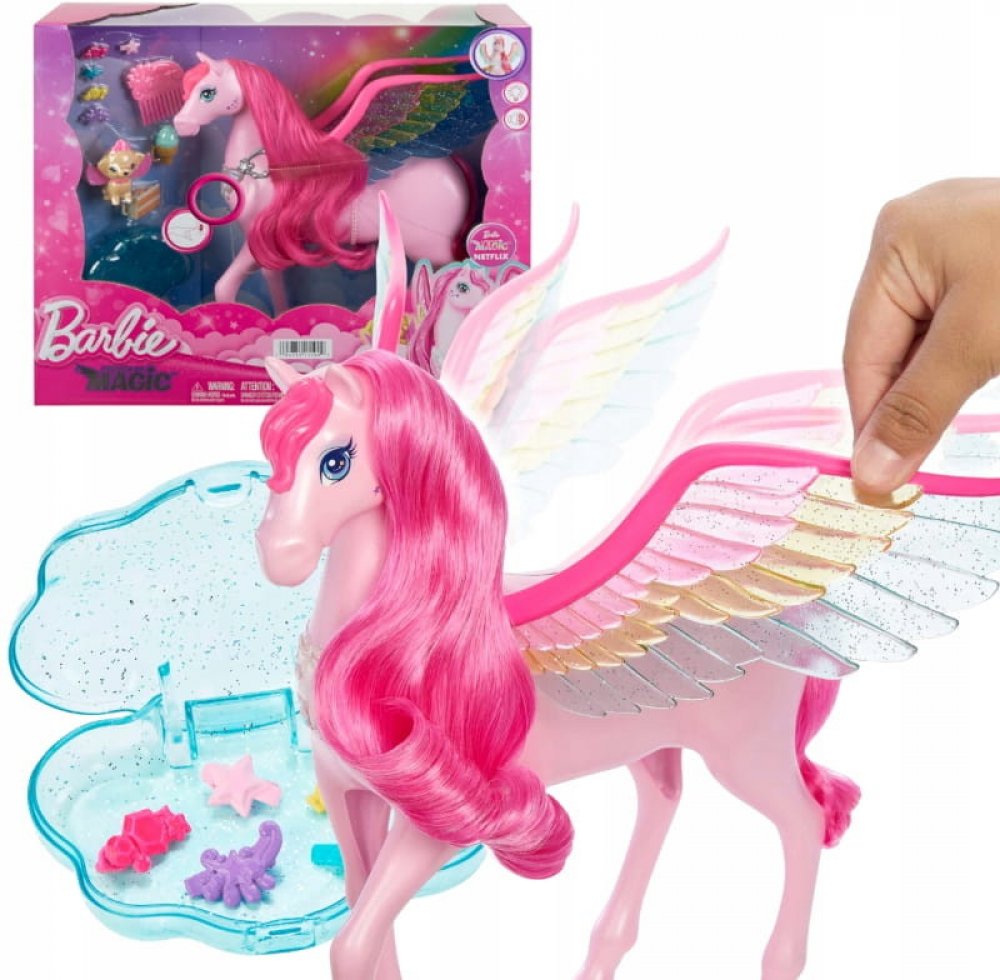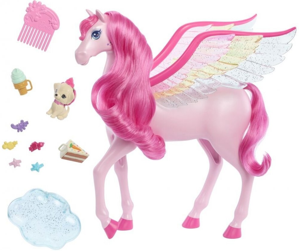 Není vyplněn Alternativní text k fotografii! Barbie a dotek kouzla - Pegas Pegase můžete znát z filmu Barbie a dotek kouzla. Jak již název vypovídá, tato hračka je prostě kouzelná! Nejvíce obdivu ale jistě sklidí nádherná dlouhá hříva Pegase. Vaše maličká se s česáním zabaví na hodně dlouho. Přehrává řadu zvuků, písní a také svítí. V balení najdete kromě Pegase i další příslušenství pro nekonečné ...