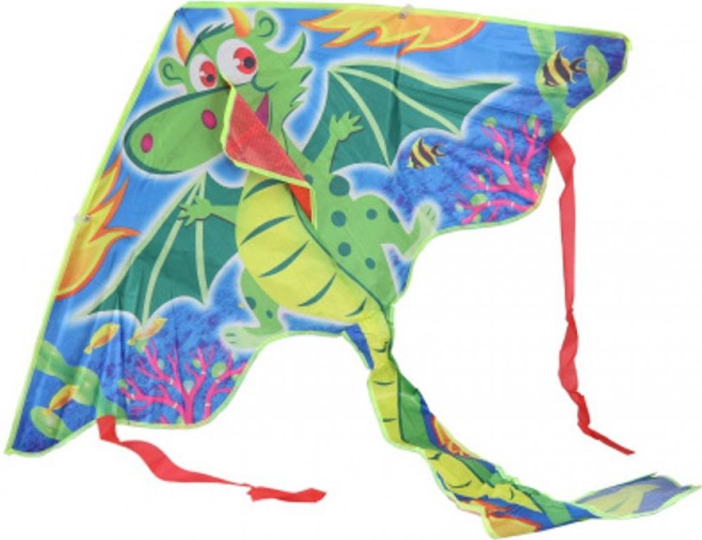 Nylonový létací drak s obrázkem draka o rozměru cca 110 x 52 cm. Věk 3+