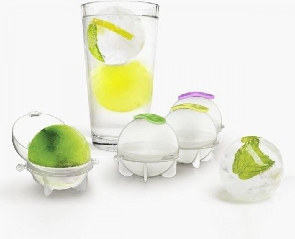 Pokud hledáte způsob, jak vylepšit koktejly, ozvláštnit večírek nebo jen zpestřit svůj pitný režim, tato sada čtyř průhledných forem na ledové koule je něco pro Vás.Můžete formu naplnit jakoukoli tekutinou - vodou, džusem, sirupem, vodkou či jiným alkoholem, jogurtovým nápojem, kávou atd. Vaše ledová ingredience se bude postupně rozpouštět, vytvářet barevné vlny a fantastickou chuť. A ještě lepší efekt vznikne, když do kuliček zamrazíte celé kusy ovoce, mátové lístky apod. Takový koktejl pak vypadá hříšně lákavě.Vychutnejte si svůj drink naplno! Průměr koule: 5 cm