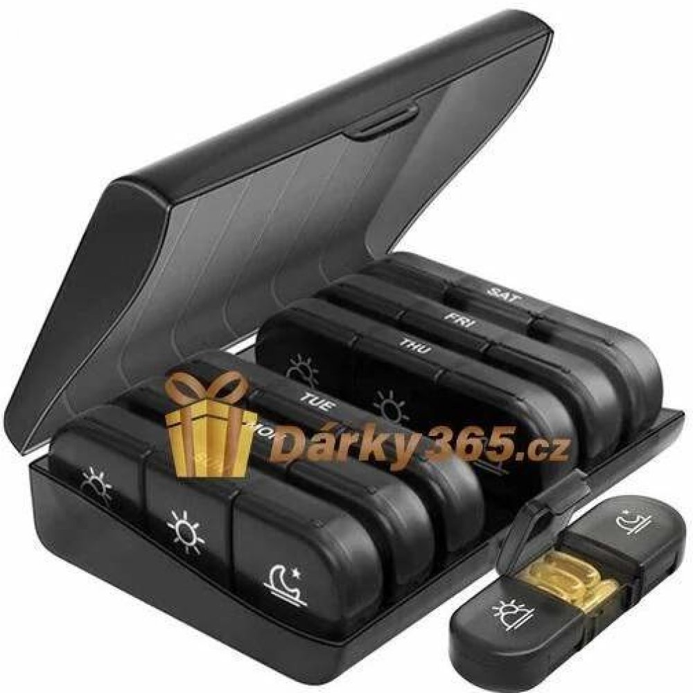 PRAKTICKÉ ROZDĚLENÍ NA DEN V TÝDNU - uvnitř organizéru je sedm samostatných kontejnerů, každý označený bílými písmeny jasně označujícími dny v týdnu. Díky tomuto můžete si snadno uspořádat své léky na týden , což vám pomůže vyhnout se chybám a zajistí, že nezapomenete na žádné dávky. Každou nádobku lze vyjmout samostatně , což usnadňuje nošení léků s sebou, například do práce nebo na výlet.