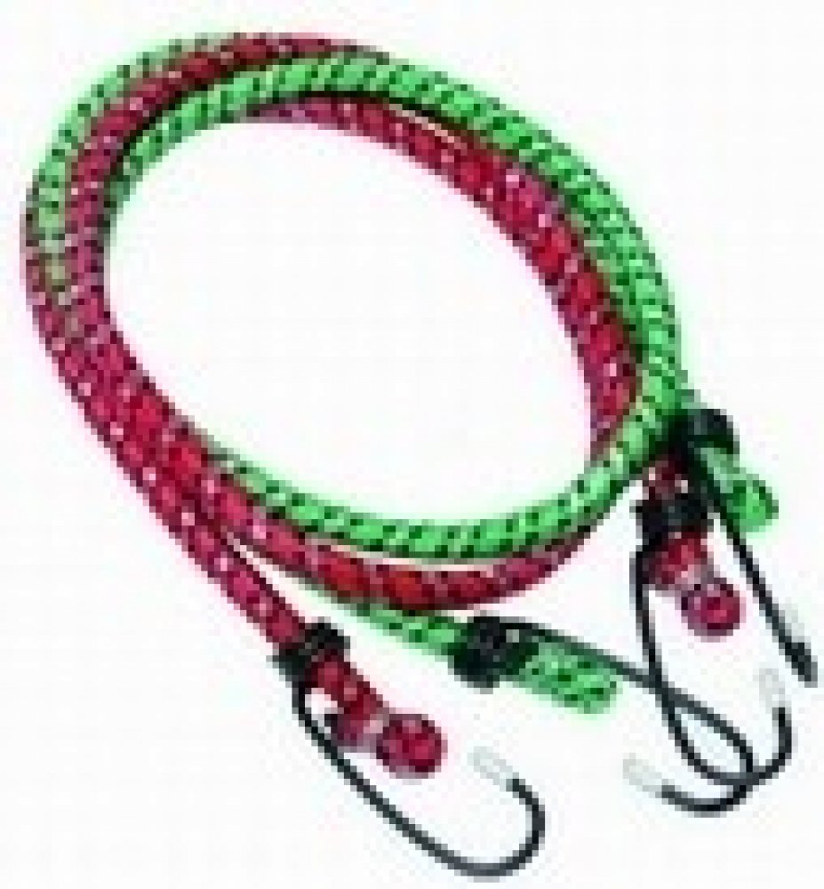 Elastické gumové popruhy, opletené polyesterem a zakončené oboustranně háky z ocelových poplastovaných drátů k uchycování zavazadel.
