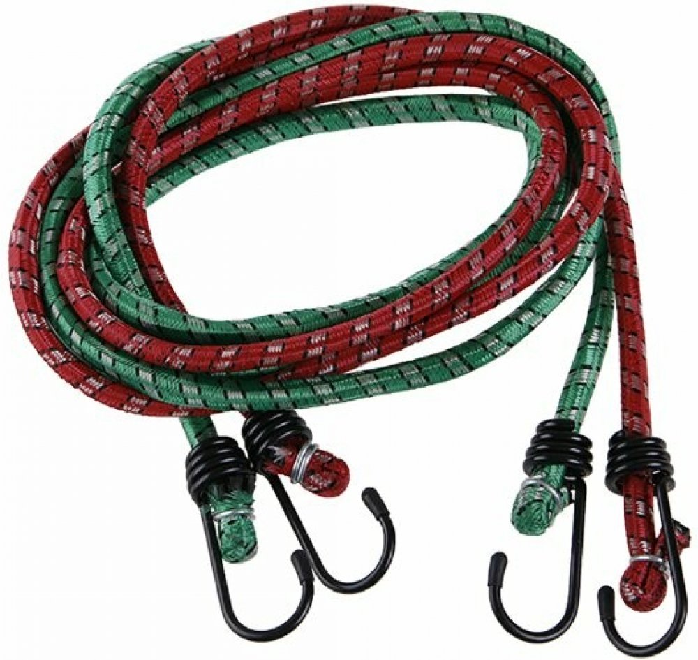 Elastické gumové popruhy, opletené polyesterem a zakončené oboustranně háky z ocelových poplastovaných drátů k uchycování zavazadel.