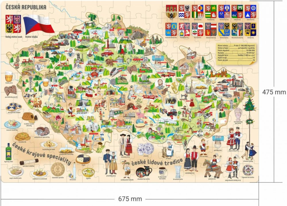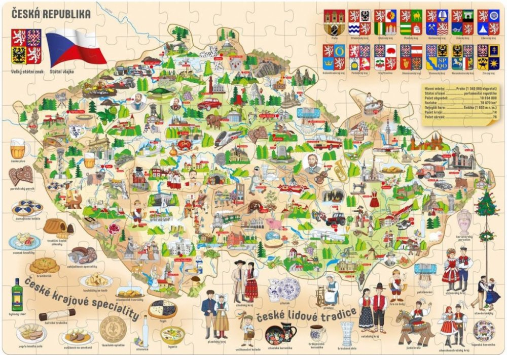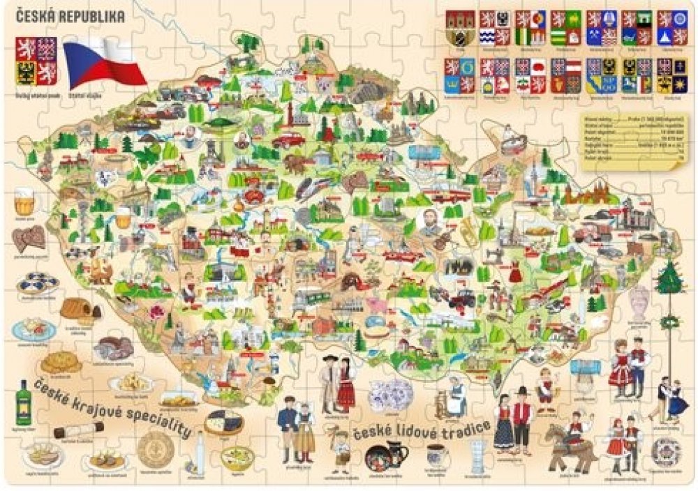Zeměpisné puzzle pro děti s mapou České republiky a ilustracemi
