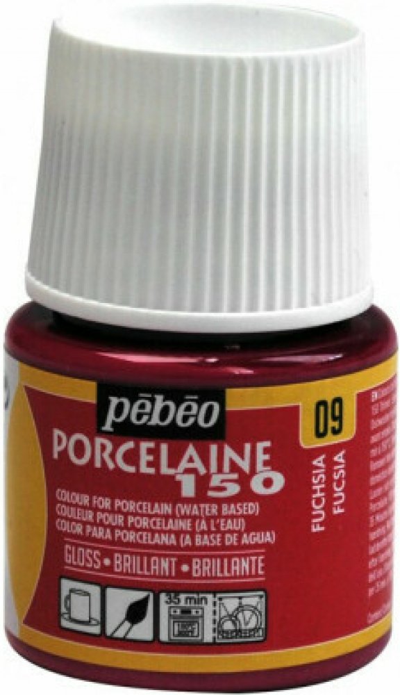 Barva na porcelán Porcelaine 45ml – 09 fuscia Vypalovací barvy Porcelaine od značky Pébéo na porcelán a hrnčířské materiály, které se však dají použít i na kovy, sklo, měď či ocel. Barvy jsou tekuté, vzájemně mísitelné a průhledné či krycí. Po vypálení jsou lesklé, podobné smaltu či glazuře. Vypalujte až po zaschnutí barev (max 24 hodin) při teplotě 150 °C na 35 minut. Barvy jsou následně velice odolné a lze je mýt v myčce. Můžete ředit ředítkem Porcelaine 150 a pomoci si množstvím kontur, které nabízíme.