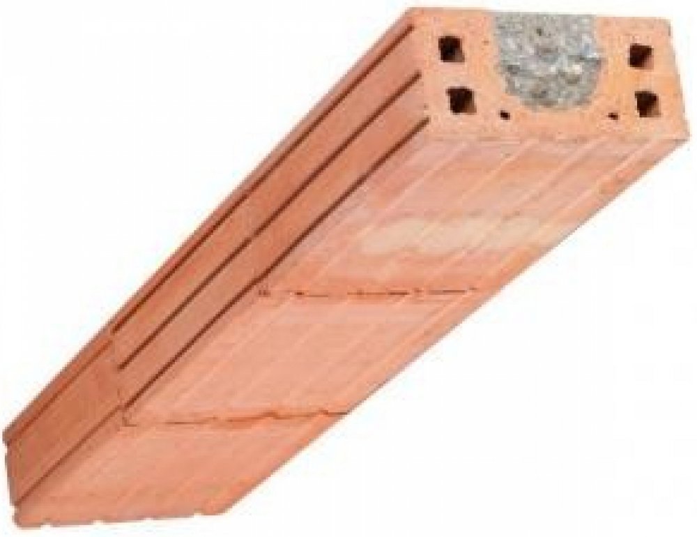 POROTHERM překlady 11,5 a 14,5 se vyrábějí z podélně děrovaných cihelných tvarovek tvořících podklad pod omítku a zároveň obálku pro železobetonovou část překladu.