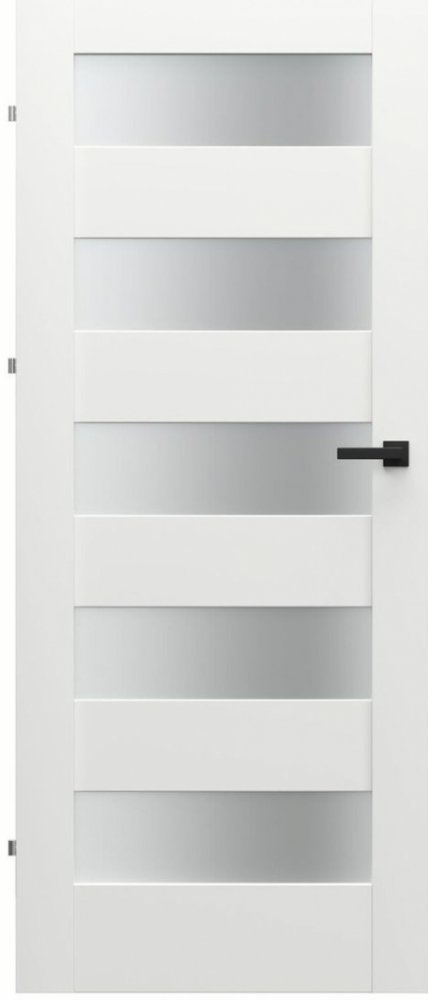 Interiérové dveře značky Porta Doors se vyznačují elegantním designem, který tvoří vodorovné rámy s matnými pásy z tvrzeného skla o tloušťce 4 mm. Tyto kvalitní rámové dveře s oblou hranou jsou ideální volbou pro každý interiér. Povrch dveří má hladkou strukturu bez mikropórů, která brání absorbování nečistot a usazování prachu, což zajišťuje snadnou údržbu. Dveře jsou vhodné jak do bytových, tak i nebytových prostor. Povrch je pokryt kvalitní fólií, která poskytuje vynikající odolnost vůči nárazům, opotřebení a škrábancům. Interiérové dveře jsou dodávány včetně zámku a závěsu, kování a zárubeň nejsou součástí dodávky.