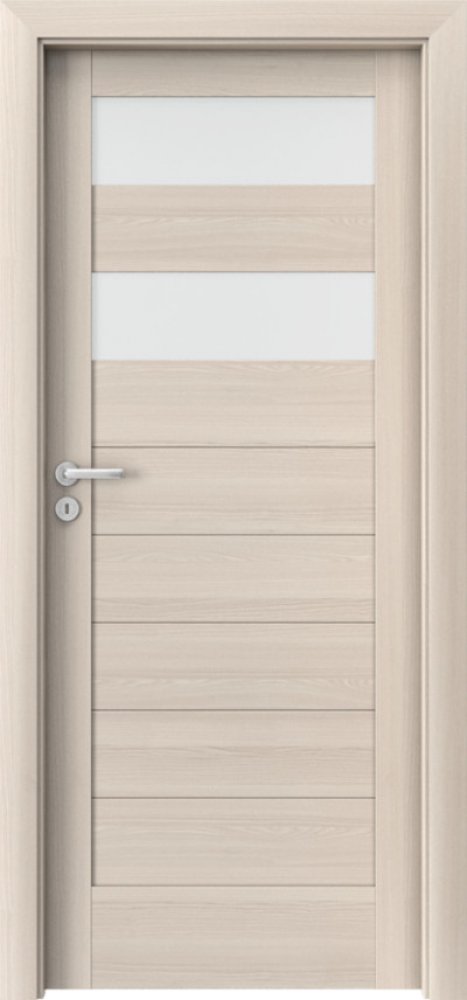 Dveře se skládají z vodorovných panelů z MDF, které jsou v závislosti na provedení (verze C1, C2, C3, C4 a C5) doplněny tvrzeným matným sklem tloušťky 4 mm. Každá z uvedené verze nabízí různý počet skleněných pruhů (1 - 5)Nabízené dekorační povrchy dveří jsou plně omyvatelné a odolávají běžné domácí zátěži a opotřebení.