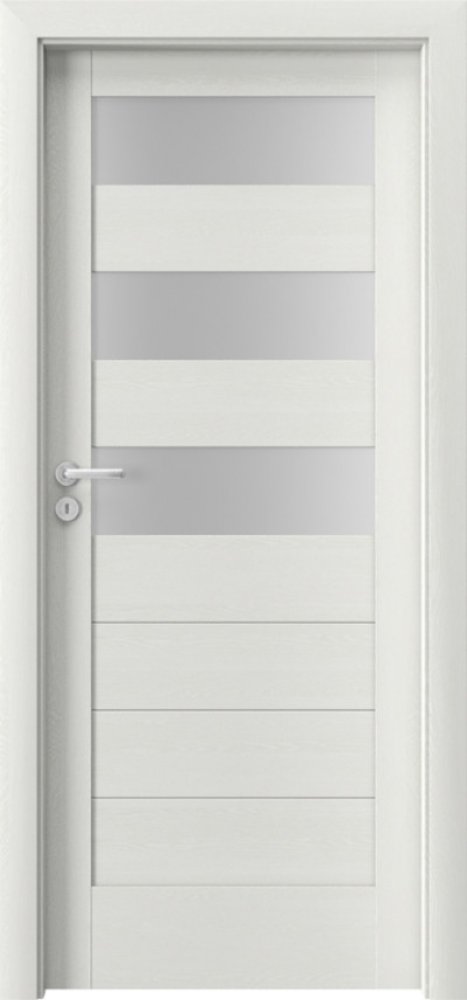 Dveře se skládají z vodorovných panelů z MDF, které jsou v závislosti na provedení (verze C1, C2, C3, C4 a C5) doplněny tvrzeným matným sklem tloušťky 4 mm. Každá z uvedené verze nabízí různý počet skleněných pruhů (1 - 5)Nabízené dekorační povrchy dveří jsou plně omyvatelné a odolávají běžné domácí zátěži a opotřebení.
