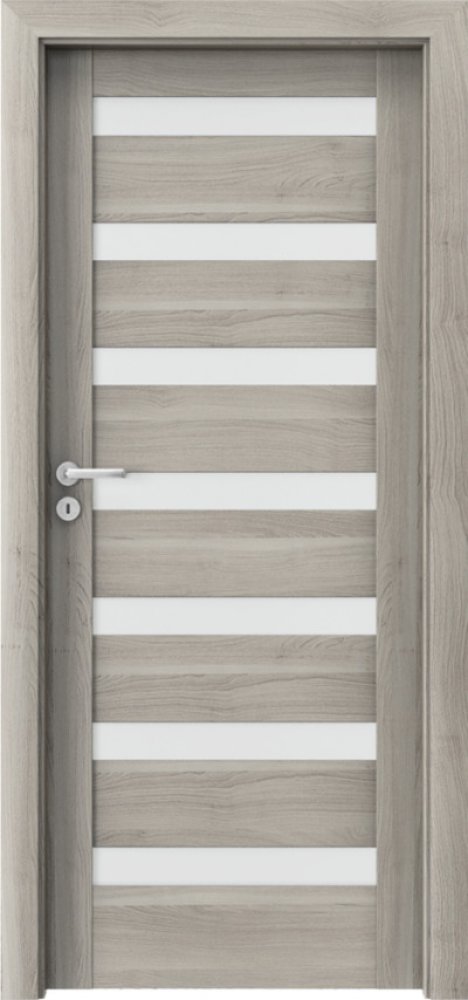 Kolekce VERTE HOME skupiny D jsou rámové dveře se 7 panely nebo jemným prosklením (verze D1, D2, D3, D4, D5, D6 a D7), které umožňuje opticky zvětšit místnosti při zachování soukromí. Matné sklo propouští světlo a rozmazává siluety postav za ním. Ve výše uvedených verzích, mají dveře z této kolekce, od 1 do 7 skleněných horizontálních pruhů. Verze D0 sklo neobsahuje.Jedná se o univerzální kolekci, která bude ladit s boho, minimalistickými i moderními interiéry.