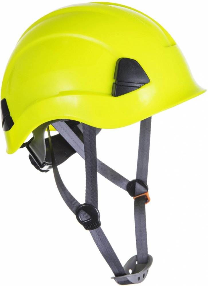 Přilba speciálně navržená pro práci ve výškách. Lehká, pohodlná, nenáročná, bez vrcholu. ABS skořepina, 6 bodové zavěšení, nastavitelná velikost 52-63 cm rohatkou. Součástí je potní proužek a řemínek (styl Y) s měkkou gumovou ochranou brady. Funkce Speciálně určené pro práci ve výškách Elektrická izolace do 1000Vac nebo 1500Vdc (EN 50365) Neventilovaná skořepina přilby pro bezpečné použití v elektrických aplikacích 6-bodový textilní postroj pro větší pohodlí a bezpečnost Nastavitelná velikost čelenky přes ráčnový systém Včetně upínacího popruhu Životnost až 7 let od data výroby (pokud není poškozená) Kompatibilní s PW47 a PS47 Clip-On Ear Muff Kompatibilní s držákem hledí na helmu PS58 Lehké a robustní HiVis barva pro lepší viditelnost za denního světla CE certifikace CE-KAT III Označeno UKCA Materiály ABS Normy EN 397 -30°C/+50°C EN 50365 třída 0 ANSI/ISEA Z89.1 TYP I Class E Tabulka velikostí