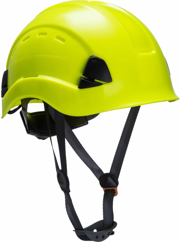 Funkce Speciálně určené pro práci ve výškách Odvětraná skořepina přilby umožňující cirkulaci vzduchu ochlazující hlavu nositele 6-bodový textilní postroj pro větší pohodlí a bezpečnost Nastavitelná velikost čelenky přes ráčnový systém 4bodový řemínek na bradu ve stylu Y Lehké a robustní HiVis barva pro lepší viditelnost za denního světla Kompatibilní s PW47 a PS47 Clip-On Ear Muff Kompatibilní s držákem hledí na helmu PS58 Životnost až 7 let od data výroby (pokud není poškozená) CE certifikace Označeno UKCA