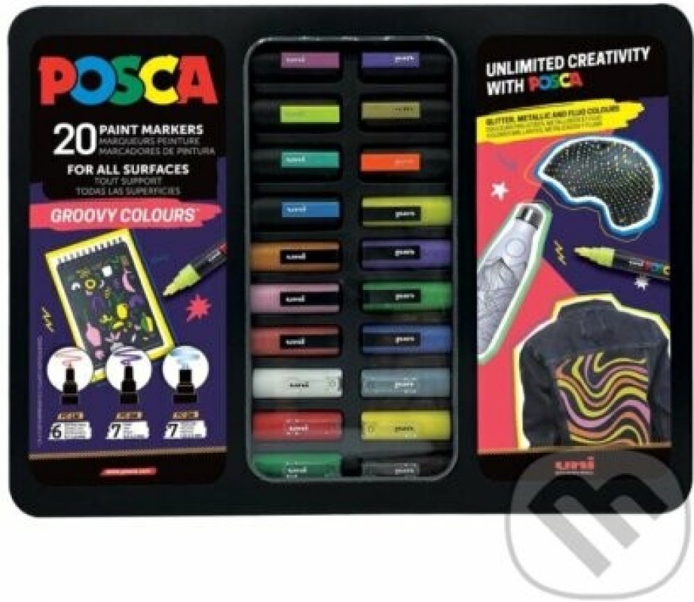 POSCA sada v kovové krabici, která se dá i pohodlně zavěsit.
