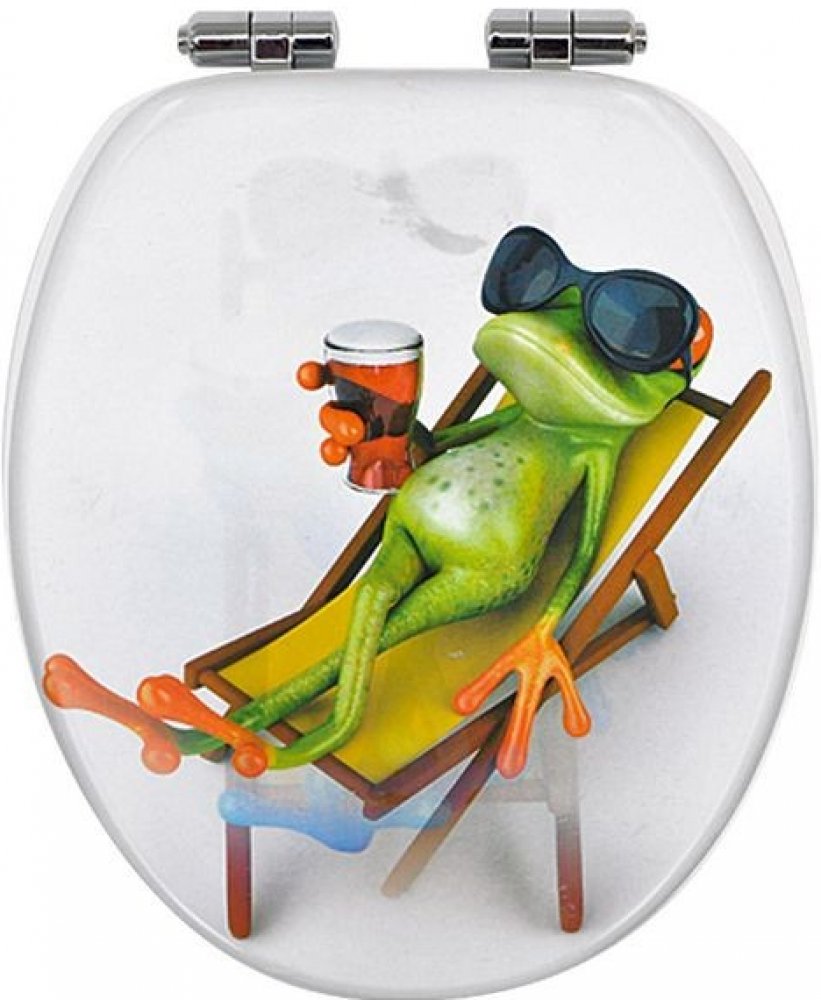 WC sedátko Froggy značky Poseidon s rozměry 388 × 475 mm upoutá svým výjimečným 3D designem. Sedátko je vyrobeno z odolného MDF a je vhodné pro často využívané koupelny a toalety. Variabilně nastavitelné závěsy jsou vybaveny dvěma tlačítky, která umožňují přímé oddělení sedátka od toalety. Integrovaná funkce softclose zajišťuje tlumené a tiché zavírání.