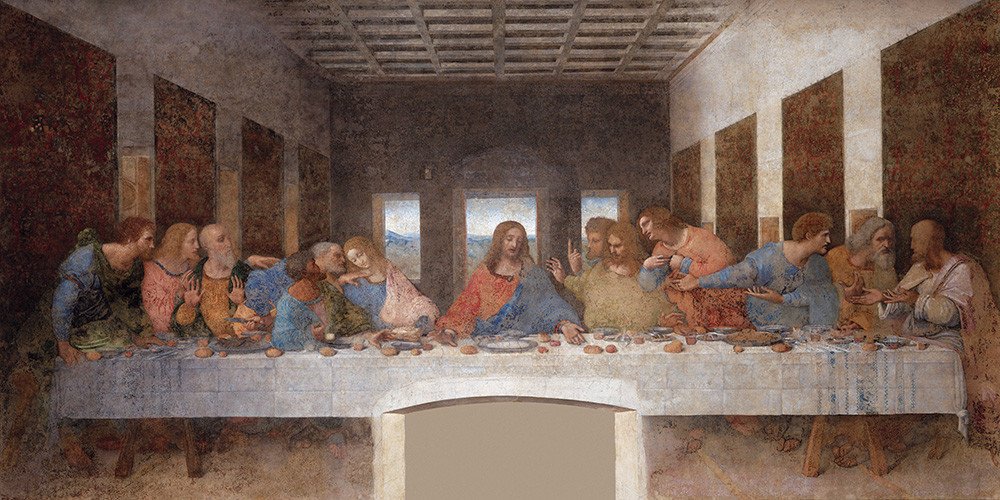 "Poslední večeře" od Leonarda da Vinci, namalovaná v letech 1495-1498, je jedním z nejslavnějších a nejvíce analyzovaných děl západního umění. Tato nástěnná malba se nachází v refektáři kláštera Santa Maria delle Grazie v Miláně a zobrazuje okamžik, kdy Ježíš Kristus oznamuje svým dvanácti apoštolům, že jeden z nich ho zradí. Ježíš sedí uprostřed stolu, obklopen svými učedníky, jejichž různé výrazy a gesta odrážejí šok, nedůvěru a zmatek nad touto zprávou. Da Vinci mistrně zachytil lidské emoce a interakce, čímž vytvořil dynamickou a živou kompozici.