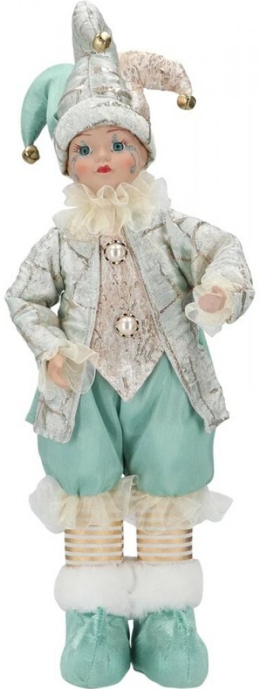 Postava stojící holčička ve zlato-modrém šašek 46 cm