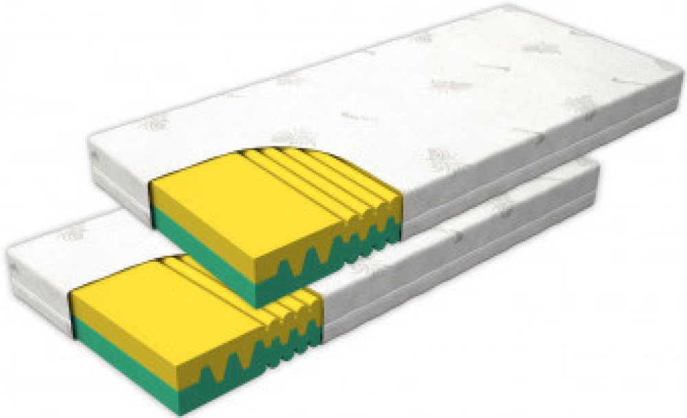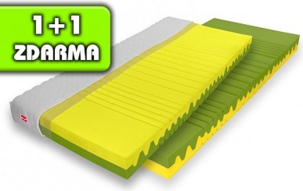 Sedmi-zónové matrace DUET 1+1 zdarma ze značkové pěny VITAPOL PUR pěny s oboustrannou konstrukcí, dvě strany tuhosti, při koupi matrace získáte druhou matraci zdarma. Konstrukce zónovaná, jádro VITAPOL PUR pěna, objemy pěny 28 a 30 kg/m3, tvrdost středně tuhá, výška jádra 14 cm, výška s potahem 15-16 cm, nosnost do 110 kg. Potah Aloe Vera, snímatelný a pratelný na 60°C.