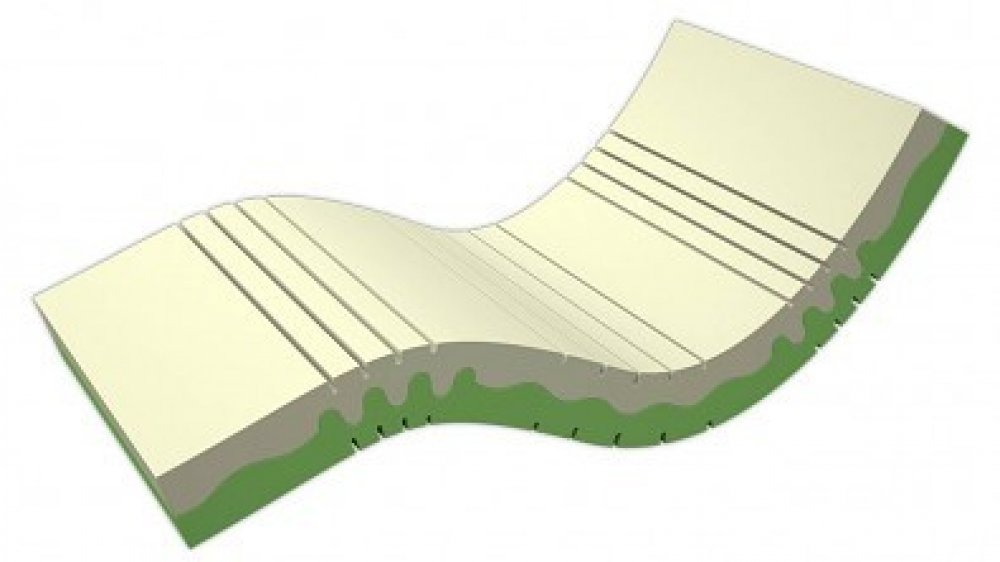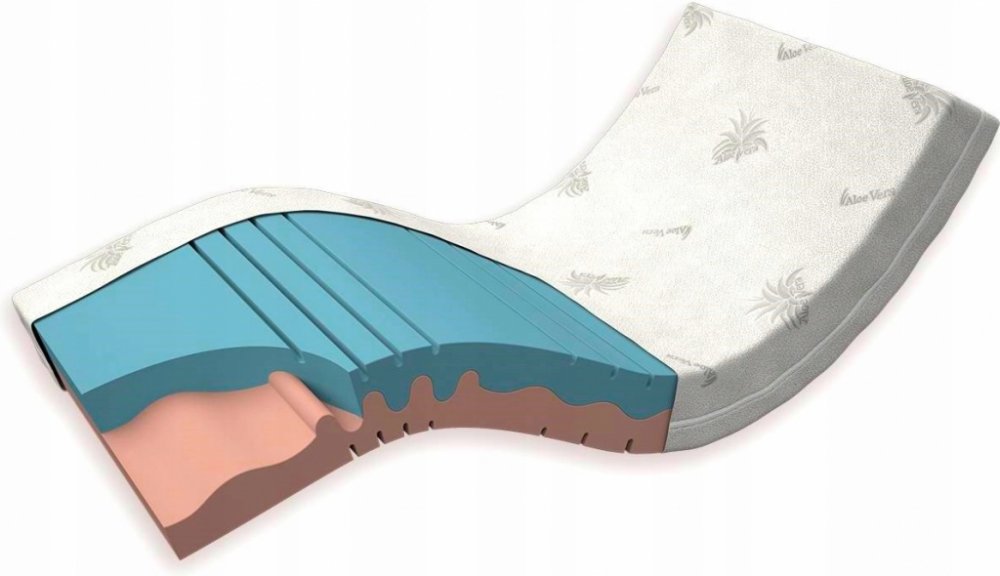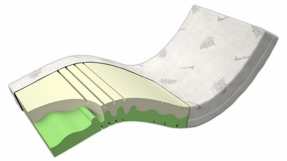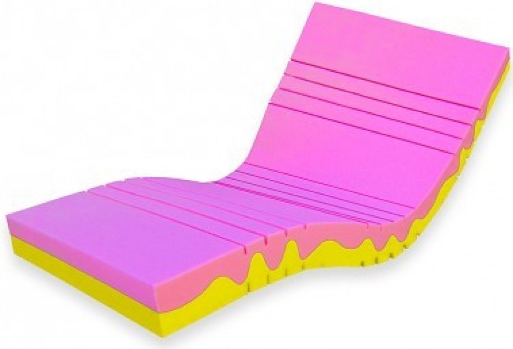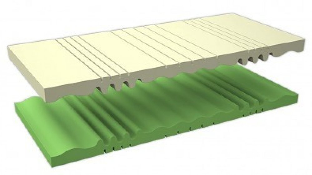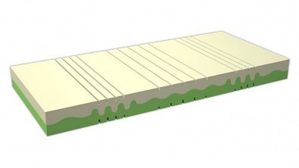 Díky zńované konstrukci je matrace tvárnější, vyměkčené zóny jsou oslabené výřezem a tuhé zóny jsou neprořezané.