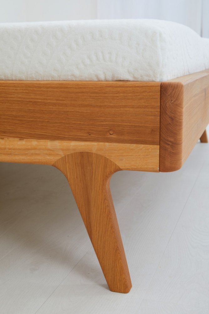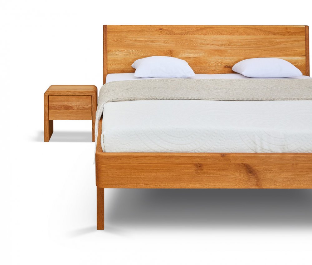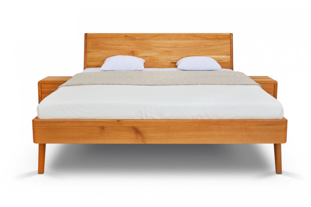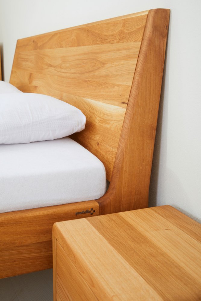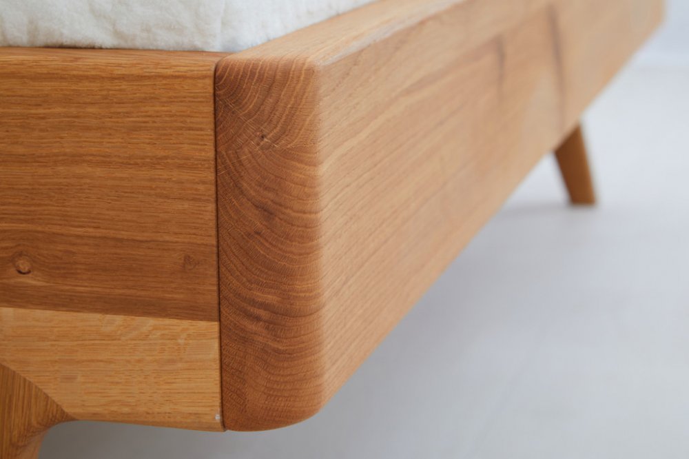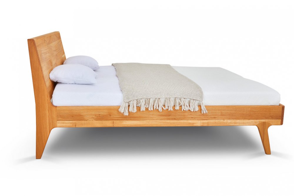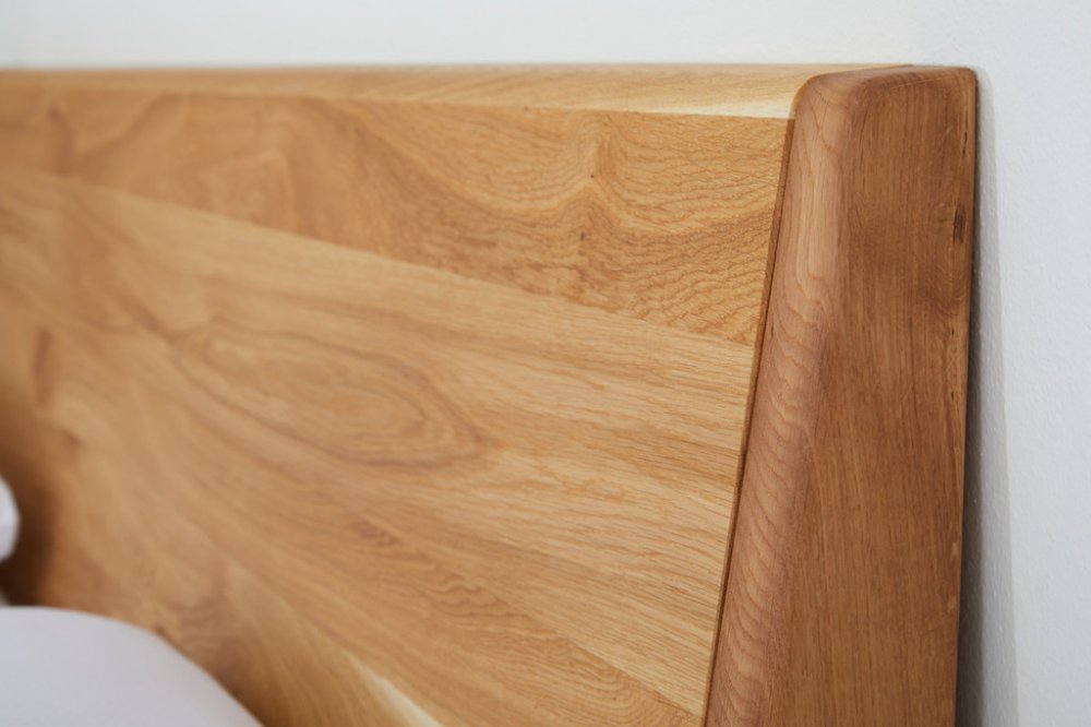 Postel z masivu LAGO buk s ohýbaným hlavovým čelem. Masivní tvrdé dřevo o síle 4 cm. Kování Hettich s doživotní zárukou. Povrchová úprava 100% přírodní olejo-vosk od BIOFA. Výběr z více druhů barevného provedení oleje. Výška hlavového čela 100 cm.