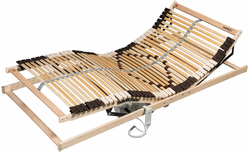 Lamelový rošt PREMIFLEX je sedmi-zónový lamelový rošt s aktivními pouzdry a motorovým polohováním. 1 motor, středový výplet, 42 lamel, aktivní kaučukové patky, 7 anatomických zón, regulace pod bederní oblastí, nosnost 125 kg, záruka 3 let, výška roštu 9 cm.