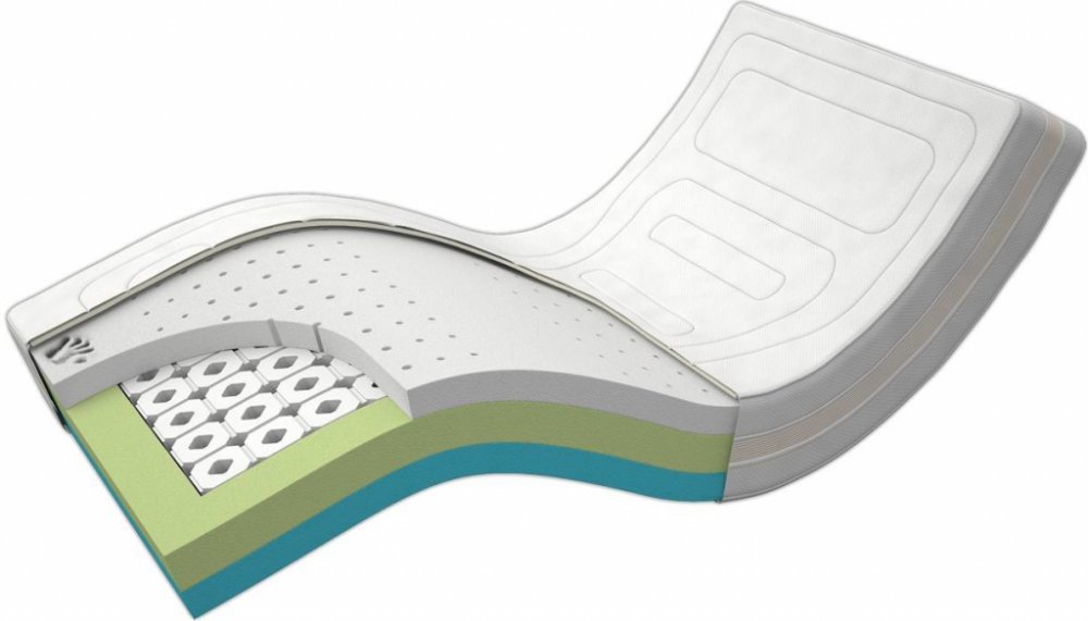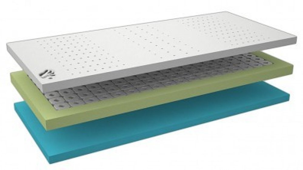 Extrémně odolná matrace VISCO BONELL SOFT je unikátní luxusní matrace s jádrem ze speciálních pružných segmentů, spodní pěna HD studená pěna AVENA a horní vrstvou děrované líné pěny 85 kg/m3 s dokonalou prodyšností. Sednvičová konstrukce zónovaná, jádro Segmenty ze studené pěny 70 kg/m3, spodní vrstva ze studené HD pěny a horní děrovaná visco pěna 85 kg/m3, tutost středně tuhá, výška jádra je 22 c...