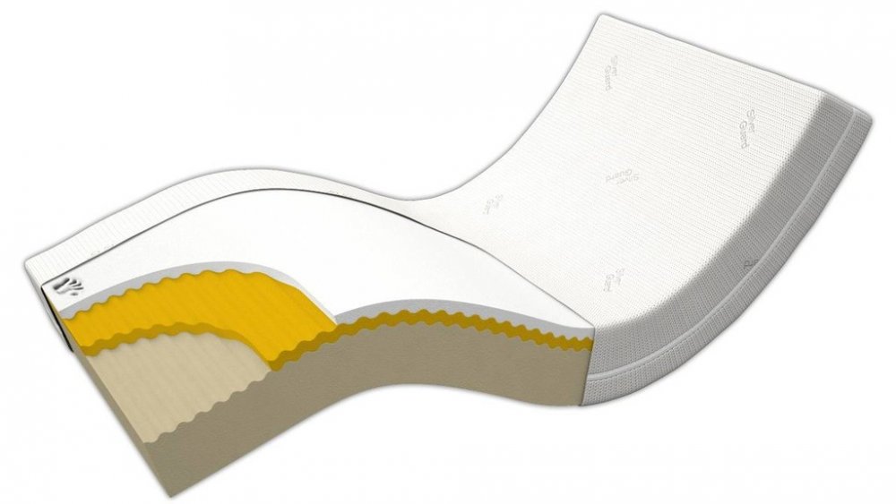 Dvojitá vrstva líné pěny s rozdílnou tuhostí, spodní vrstva studená pěna.