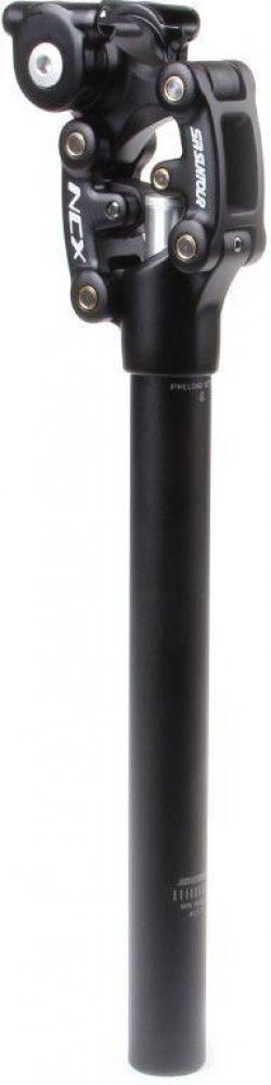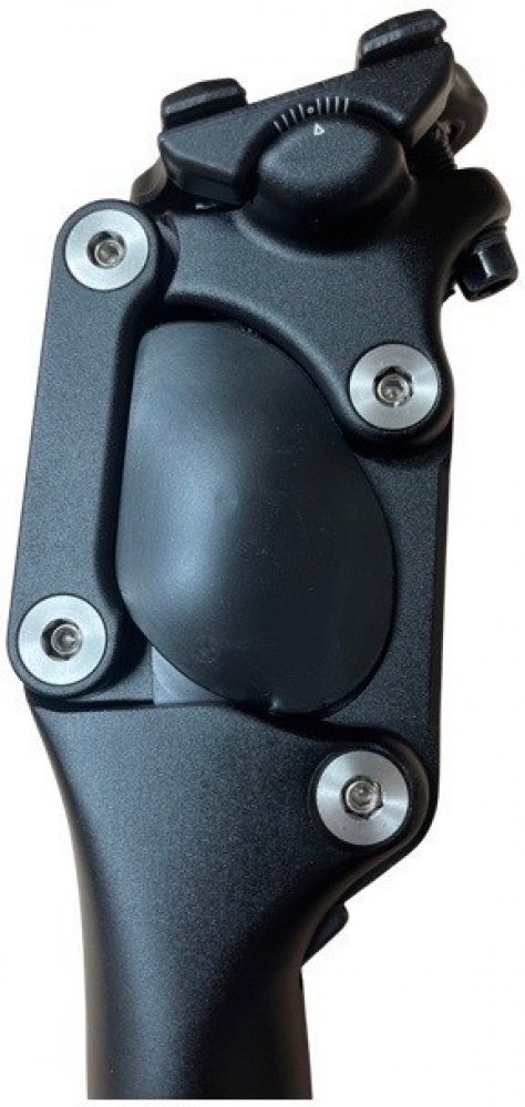 - Nastavitelná tvrdost pružiny: Tvrdost pružení lze jednoduše nastavit šroubem na spodní části sedlovky. Standardně vybavena pružinou pro hmotnost 70–85 kg.