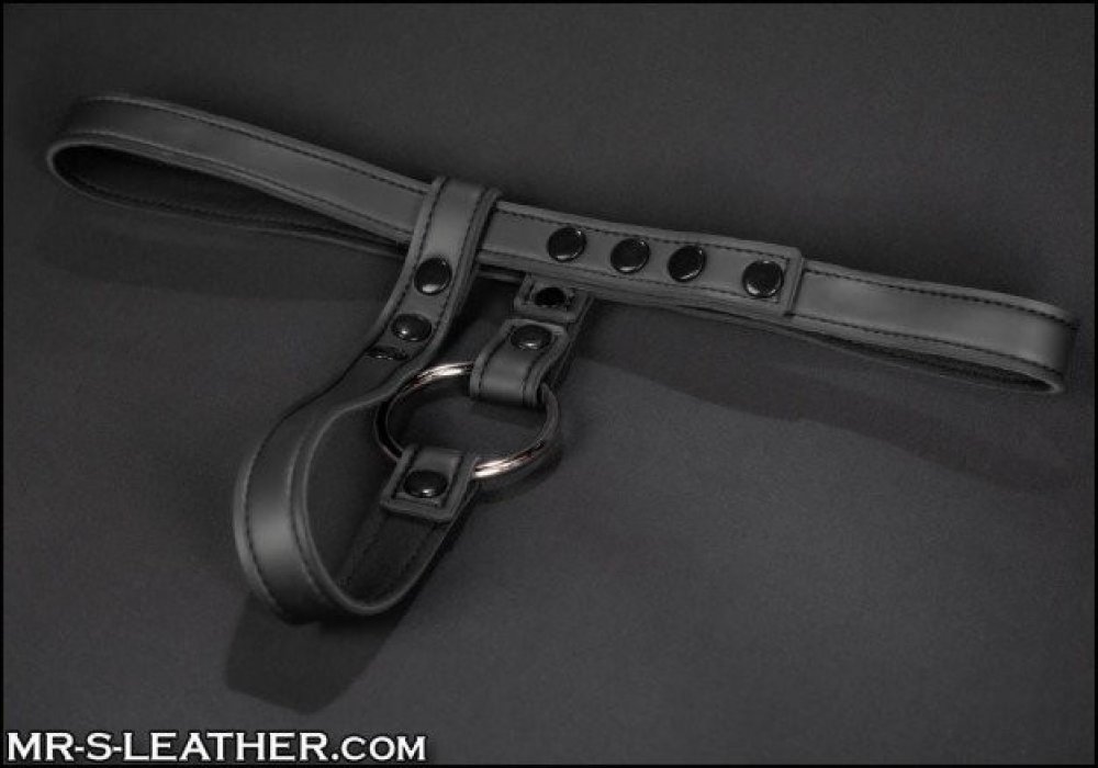 Černý postroj z neoprenu pro připevnění análních kolíků, který je spolehlivě udrží na svém místě. Součástí postroje je vyměnitelný kovový erekční kroužek s vnitřním průměrem 58 mm. Dostupný ve dvou velikostech. Nastavitelná velikost pomocí patentek.
