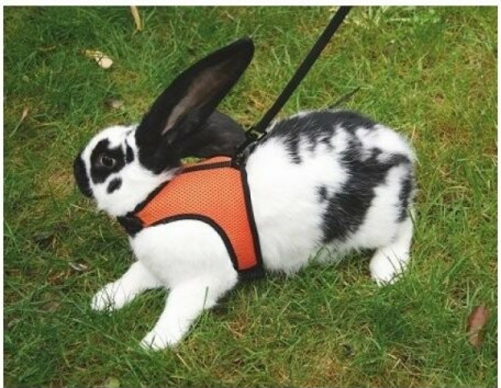 Vodítko umožňuje dětem bezpečně vzít králíčka do venkovních prostor. postroj vyrobený z prodyšného materiálu se snadno upne na tělo zakrslého králíka pomocí suchého zipu, díky čemuž je zvlášť vhodný pro neklidné jedince jednoduché přichycení lanka pomocí svorky na postroji je přichycená rolnička pružné vodítko o délce 120 cm krční obvod: 22 - 26 cm břišní obvod: 33 - 43 cm