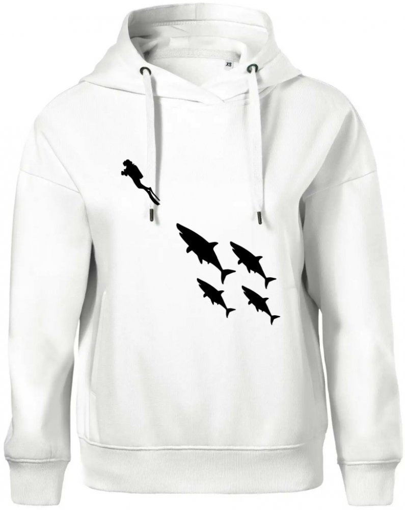 Potápěč žraloci Oversized mikina dámská Moon kratší + širší Bílá