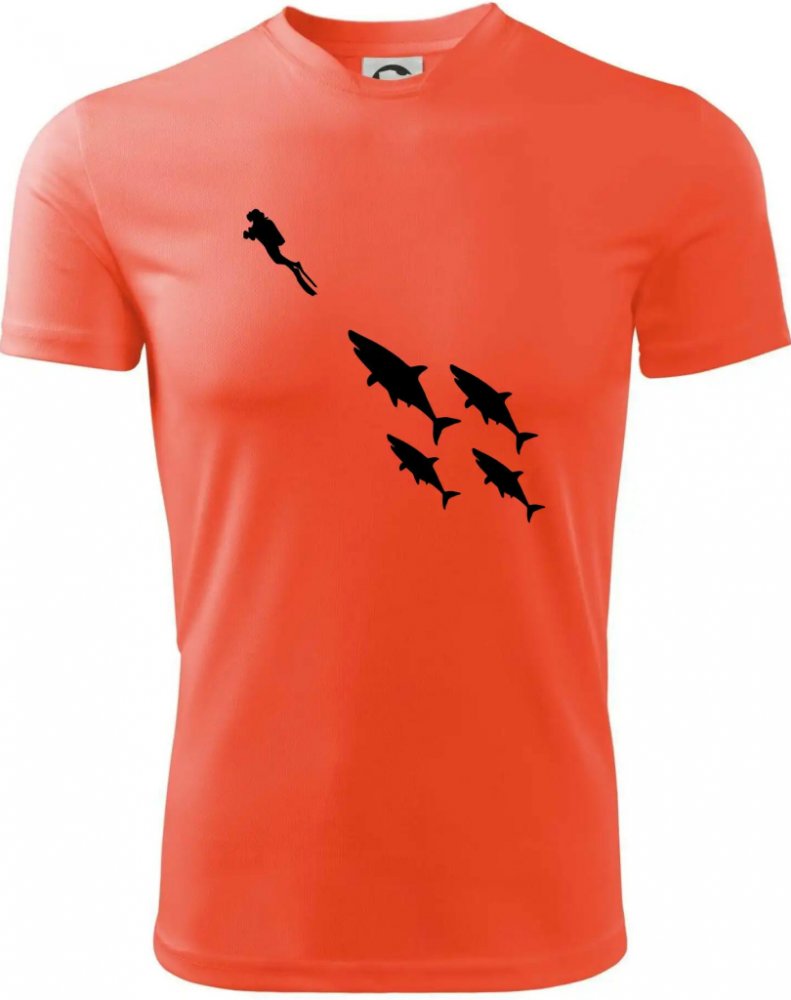 Potápěč žraloci pánské triko Fantasy sportovní dresovina neonově oranžová