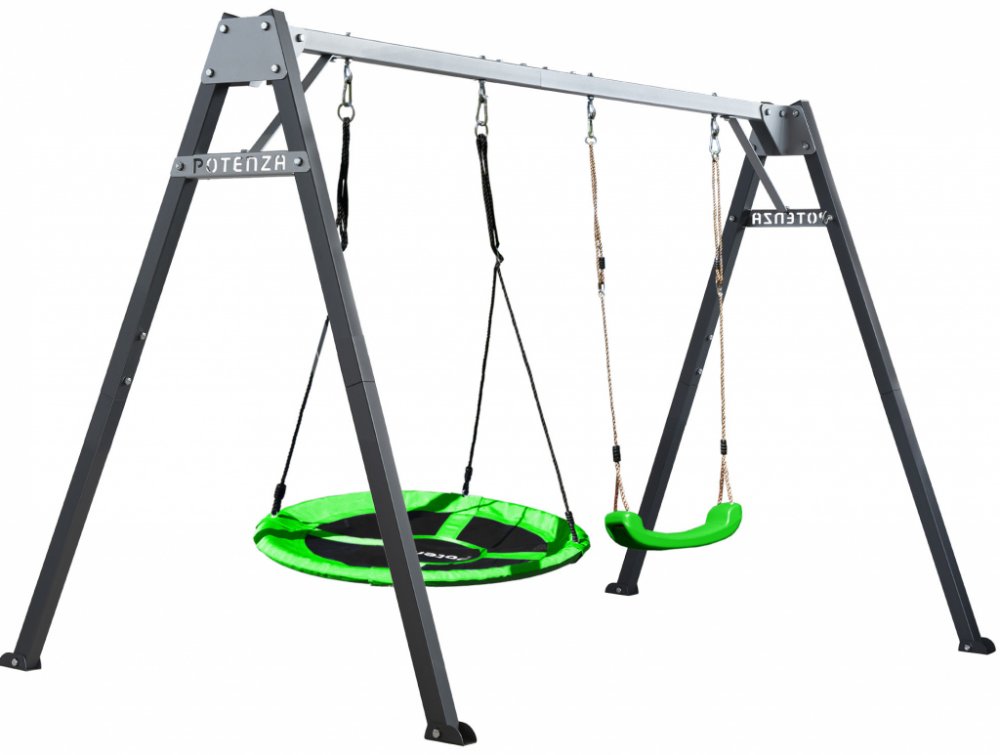 POTENZA Dvojitá zahradní houpačka + čápí hnízdo a houpačka zelená