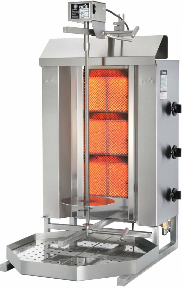 Plynový gril na kebab/gyros- Jednotka z nerezové oceli- 3-topná pole- Maximální hmotnost masa: 15 kg- Maximální výška masa: 340 mm- Spotřebič vybavený zásobníkem na tuk: 500 x 500 mm- Plocha hořáku: 370 x 135 mm- Jednotka splňuje všechny bezpečnostní předpisy* Je možné objednat výrobek vybavený zásobníkem na tuk s nestandardními rozměry