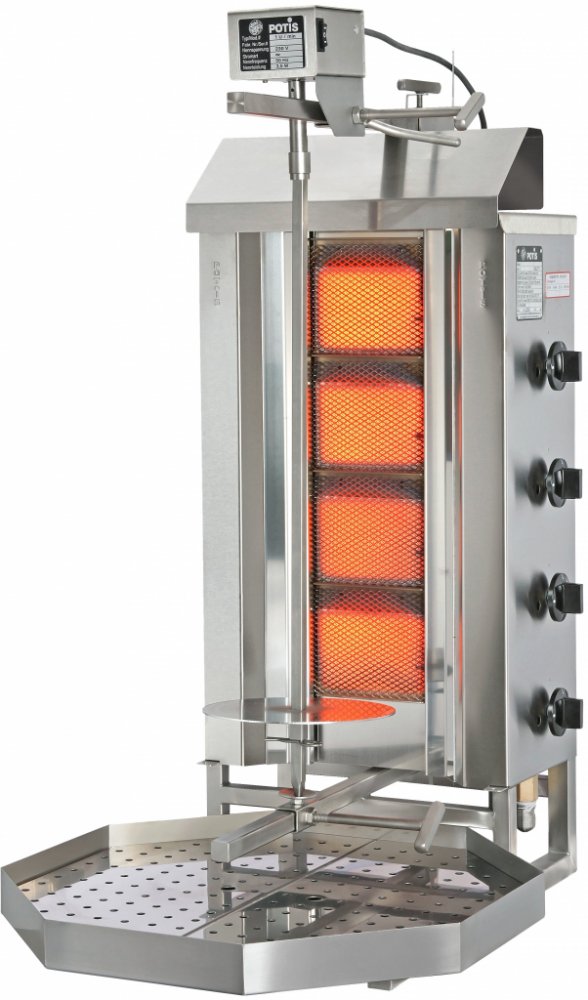 Plynový gril na kebab/gyros- Jednotka z nerezové oceli- 4-topná pole- Maximální hmotnost masa: 30 kg- Maximální výška masa: 470 mm- Spotřebič vybavený zásobníkem na tuk: 500 x 500 mm- Plocha hořáku: 500 x 135 mm- Jednotka splňuje všechny bezpečnostní předpisy* Je možné objednat výrobek vybavený zásobníkem na tuk s nestandardními rozměry