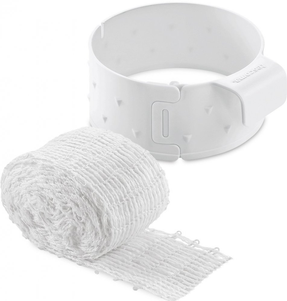 Praktický nástavec lze pro snadné nasazení síťky zmenšit srolováním přibližně do polovičního průměru a po nasazení síťky rozevřít a zajistit tak dostatečnou velikost otvoru pro pohodlné plnění síťky.