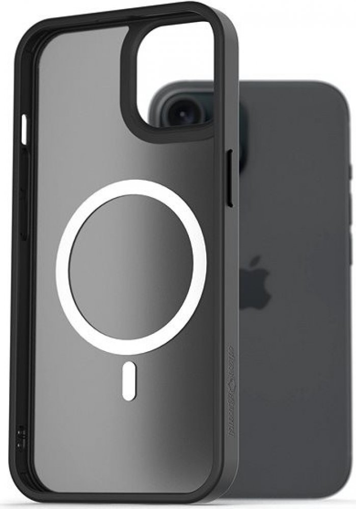 pro Apple iPhone 15, materiál TPU a polykarbonát, pevný, snadno se nasazuje a sundává, vyvýšená záda pro ochranu fotomodulu, MagSafe, kompatibilní s bezdrátovým dobíjením, ochrana displeje proti poškrábání, otvor na poutko, výřezy pro konektory a tlačítka, tloušťka 2 mm (AGD-PCMM1B)