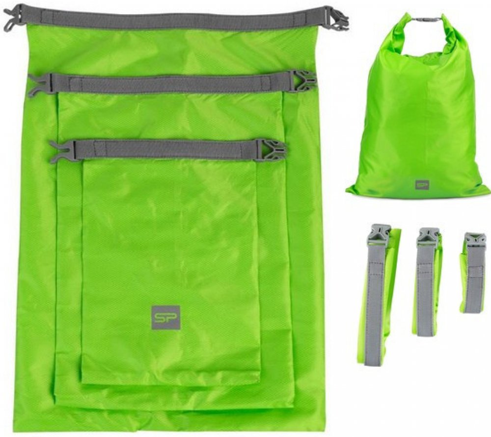 Vodotěsné kryty Spokey DRYSET 3 ks:Vodotěsné kryty ve 3 velikostechSada nepromokavých obalů vhodných na doklady, potraviny a menší kusy oblečení, které ochrání vaše cennosti a věci před vodouJsou vyrobeny z pevného materiálu s rolovacím uzávěrem . Parametry:3 ks v balení materiál : 210D polyester rozměry: 19x27 cm / 25x37 cm / 46x33 cm objem: 1x 1l / 1x 2l / 1x 8l Sada nepromokavých tašek DRYSET j...