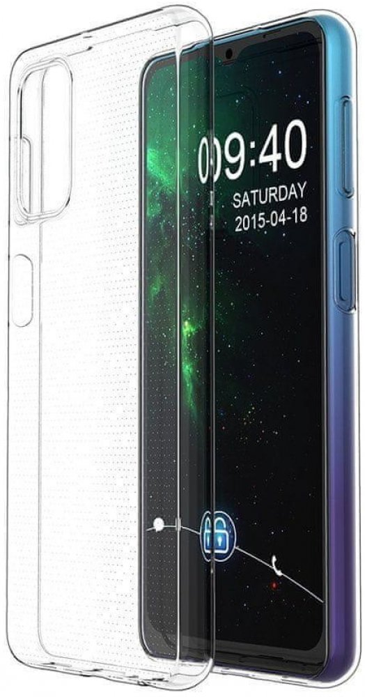 Ochranné silikonové pouzdro pro Samsung Galaxy A41, transparentní, výřez pro fotoaparát, snadné nasazení.