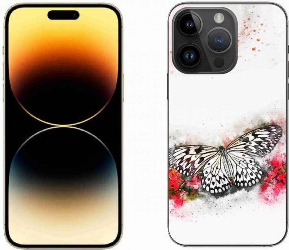 Pouzdro mmCase Gelové iPhone 14 Pro Max - černobílý motýl